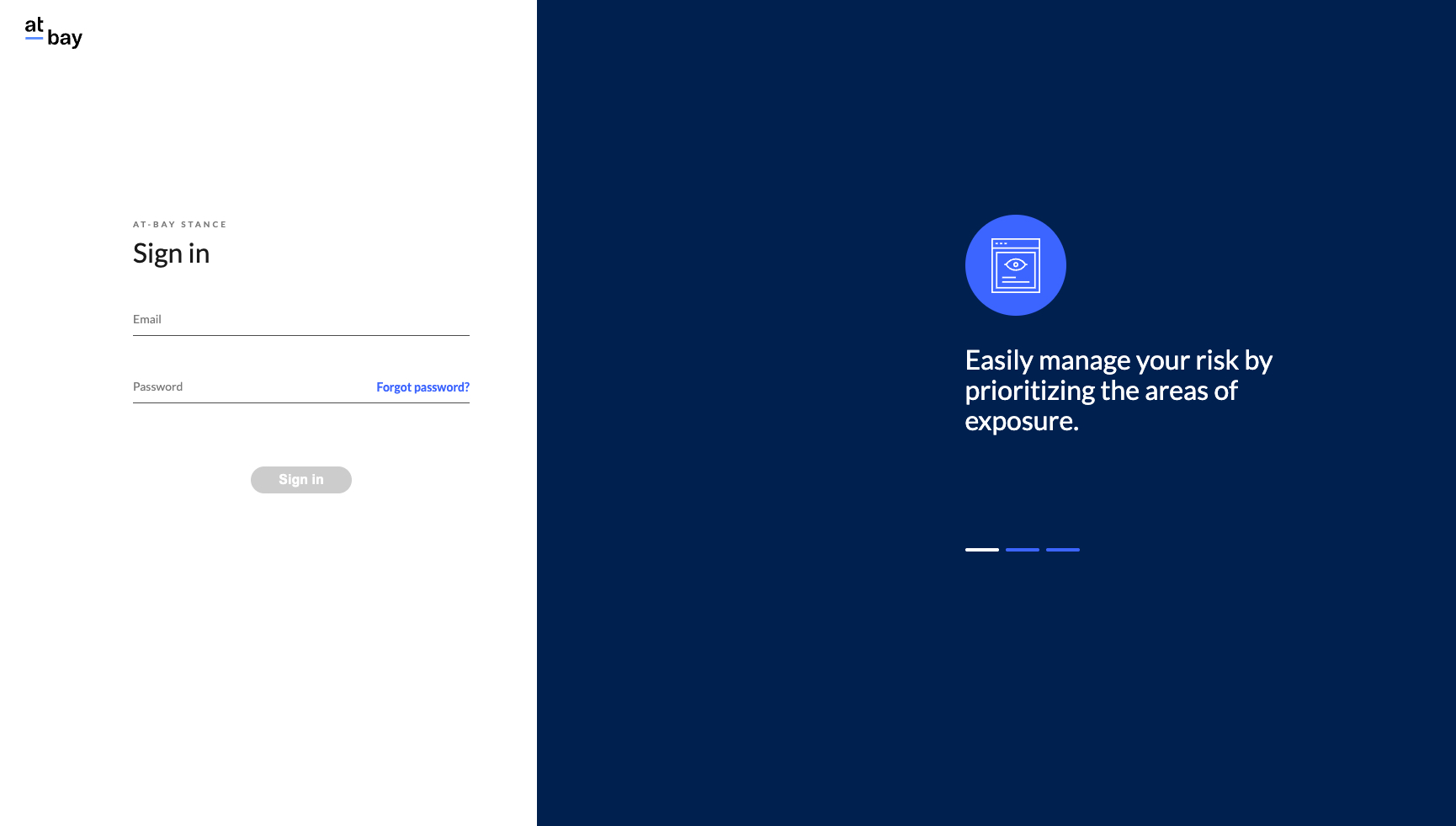 Once you have activated your account, you can log in to At-Bay Stance through At-Bay’s website.