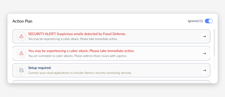 - Resolving urgent issues, enabling integration and taking steps to improve your security posture will close actions.